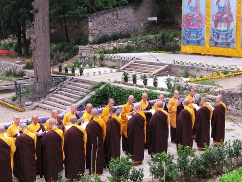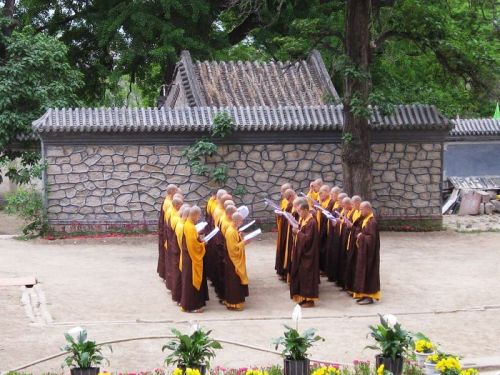 万物间皆众缘和合而存在,法门寺佛指舍利安奉大典刚一结束,而龙泉寺僧团的15位新戒比丘也刚回到寺里,正好迎来了今年结夏安居的时间。5月10日,农历四月十六上午,全体比丘集众,做解界、结界羯磨法,将去年结的净地、大界和戒场解掉,重新结今年安居的戒场、大界和净地,这样在安居期间所有的比丘不能随便离开大界而出外。有这么多新比丘的加入,让场面也很庄严而振奋。下午,为了顺利赶上僧团的结夏安居,师父和几位去法门寺参加佛指舍利安奉大典的法师们在那边大典刚一结束,就立刻返京,中午抵达,下午两点半顺利开始夏安居的受筹、安居仪轨。