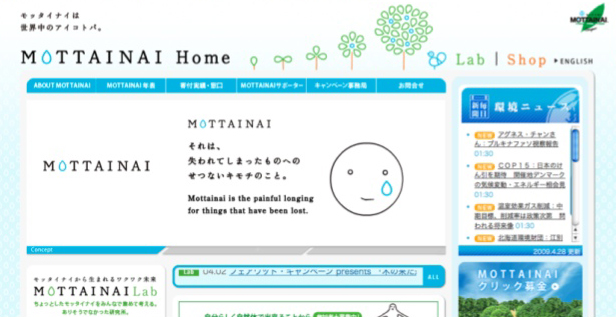 「MOTTAINAI」首頁圖 http://www.mottainai.info/