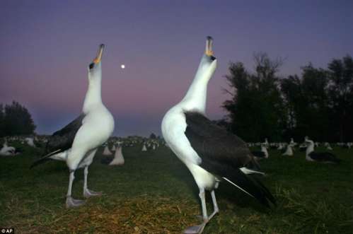 一对雌雄信天翁“对情歌”