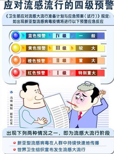 但每一次流行病的爆发都是不可预测的,而且还存在很多猪流感病毒的变种,我们也不应低估真实的情况,更不能掉以轻心。这将是一场马拉松,不是短跑。 据报道,在法国、香港、新西兰、加拿大和西班牙都已有人感染了猪流感。在受灾严重的墨西哥已有80多人被认为死于猪流感,美国联邦政府的卫生官员则宣布公共卫生紧急情况,正准备分发5000万剂量的抗病毒药物,国土安全部也将开始对进入美国的任何旅客进行“被动式监测”。任何疑似病例都要接受检查,如果发现生病将被隔离。一些政府采取了还更为极端的行动。在香港,当地官员敦促居民尽量避免前往墨西哥, 在医院里38℃以上者或在过去7天去过疫区的人将受到一些行动限制。 虽然一些科学家说迄今已有效地抑制了H1N1病毒, 但现在世界各地卫生官员正试图采取预防措施。而我们应该做些什么呢? 1.目前的猪流感有多严重? 流感病毒不断变异致使我们的免疫系统不能完全有效抵抗它,当然,我们的免疫系统也还是会做出相应的反应,以免病毒夺走我们的生命。由于病毒结构的变化很快,新的流感发生时,可能人类很少或没有对这一病毒的免疫力,接着病毒在世界各地蔓延。例如,1957年和1968年都发生了两次轻度的世界流感大流行,而1918年的“西班牙流感”还造成大约40至50万人死亡。2003年,H5N1禽流感病毒也导致257人死亡,幸好这一病毒在人际之间的传播能力不强。 为了准确评估传染病的流行情况,联合国的卫生机构将传染病的流行分为6个阶段,目前的猪流感只处于第3阶段。当世界卫生组织宣布其进入第4阶段时,这意味着一个新的病毒开始在人与人之间快速传播,大规模的传染病将会爆发。 H1N1型流感病毒已被确定为一种新病毒,并在墨西哥已经大规模的爆发,在美国、加拿大和其他国家也发现了病例,这看起来似乎已经达到了流行病的第四阶段,虽然相关卫生专家已于4月25日对此进行了紧急磋商,但世界卫生组织并没有正式宣传猪流感进入了第四阶段。世界卫生组织的官员Keiji Fukuda周日表示专家组“想多一点资料和一点点的时间来研究 ”,尽管猪流感病毒正在迅速演变,但世界卫生组织的希望其决策建立在可靠的实验报告的基础上。 2.如果猪流感被宣布为世界性流行病大爆发,将会有什么后果? 如果猪流感行进入了第四阶段,这意味着国际社会将合作采取非常严厉的措施来控制其流行,这些措施不止给社会带来恐慌,更重要的是将严重影响世界的经济发展,所以世界卫生组织的宣布除了考虑科学性外也有政治上的考虑。所以宣布猪流感进入第四阶段并非一个无关紧要的决定,对于世卫组织来说,这将封锁疫区的交通以隔离病毒。但如果猪流感已在墨西哥大规模爆发,国际社会也已无法将病毒阻止在墨西哥的国界之内,这似乎已经错过了最佳时机。 为避免感染到流感,墨西哥城居民戴上了口罩。 3.墨西哥的疫情非常严重,而为什么其他国家包括与其相邻的美国的情况却很轻? 这是一个使日内瓦和华盛顿官员都感到困惑的问题。在墨西哥,猪流感已经造成了大量病人患有严重的呼吸系统疾病,甚至剥夺了一些健康成人的生命。然而疫情在美国却是很轻微的,甚至可能不会得到大家重视。 原因可能是猪流感在墨西哥蔓延的时间比其他国家长。然而,真正严重的猪流感病毒到底会是怎样的仍然悬而未决的问题,其答案可能随时间而改变。 1918年西班牙流感大流行开始时相当温和,但病毒辗转几个月之后却变异成了一种更为致命的形式。猪流感或许也会有与此相似的情况发生。 4.国际社会已做了哪些准备应对猪流感? 当今世界比以往任何时候更能很好地应对流感大流行。为应对H5N1禽流感病毒,世界卫生组织与世界各国都储存了数百万剂量的抗病毒药物,可以帮助人们防治猪流感以及其他流感,很多国家都有应对公共卫生的应急预案。在处理SARS和禽流感时,国际组织的卫生官员总结的很多经验也可以发挥作用。另外,相比以往我们可以更快地找出新的病毒,我们已经发展出了一系列拯救生命的技术和抗病毒药物,这在1918年都是没有的。 而同时全球化也致使病毒流行的风险更大,全球化的国际航空旅行意味着病毒可能迅速蔓延到世界各地。尽管世界卫生组织在相当短的时间内可以制定一个新的猪流感疫苗方案,但是,我们仍然需要花上数十年之久的过程来制造出有效的疫苗。 事实上,最大的风险并非来自猪流感病毒本身,而是其“附带损害”。这种“附带损害”来自各国政府为应对猪流感而建立的边境管制措施,这些管制措施势必破坏世界的自由贸易,这不仅会给正处于衰退中全球经济雪上加霜,而且我们超市为减少浪费和提高利润,其所依赖于国际贸易的生活必需品都将保持在尽可能低的水平,这就意味着我们的生活必需品没有大量的储存,供应链中的食品、药品等等的缺乏也将会带来潜在危害。 我国卫生部的四级预警。 5.我们应该保持怎样的心态? 虽然猪流感情况是严重的,但是国际社会也相应地采取了众多的预防措施。猪流感在墨西哥境外还没有造成太严重的影响。这次与2003年非典爆发时不同,那时是面对一个全新的病毒,大家都未有预防措施而导致全球恐慌。 遇到流感人们可以如何保护自己?要做的就是注意卫生,如经常洗手,戴口罩,远离公共场所和避免旅行,没有真正致命的流行病,恐慌只会适得