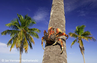 椰子蟹是一种热带西太平洋海滨十分奇特的甲壳类,出没于海岸林附近,例如林投树、椰子树下。