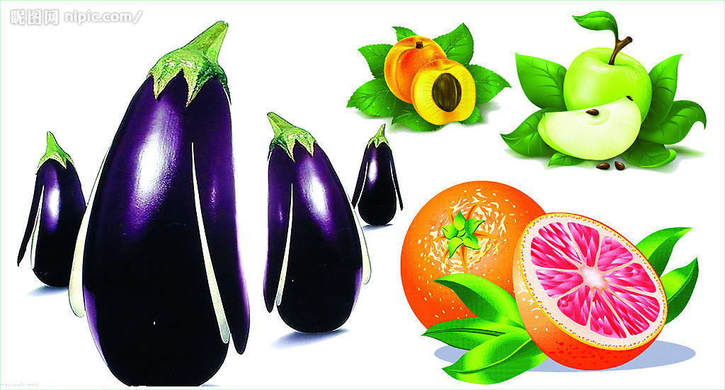 茄子、加州橘、辣椒、菠萝与西瓜。