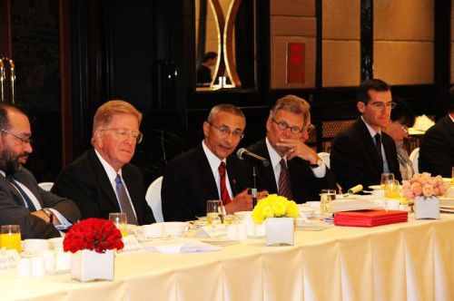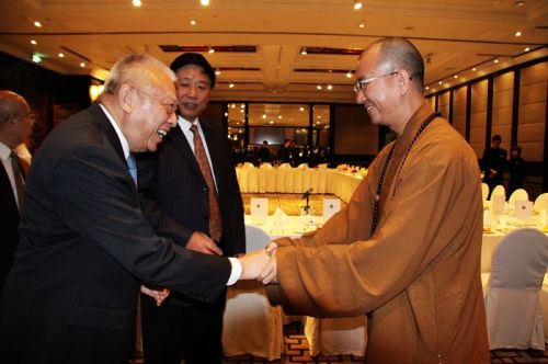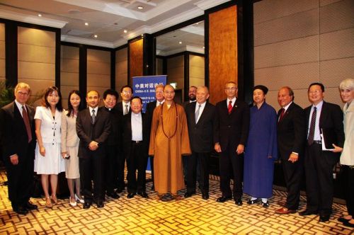 在热烈庆祝中华人民共和国成立六十华诞前夕的首都北京,我谨代表中国数以亿计的佛教徒,对以约翰·波德斯塔主席为代表的“美国进步中心”的各位尊贵的客人,表示最真诚的祝福。