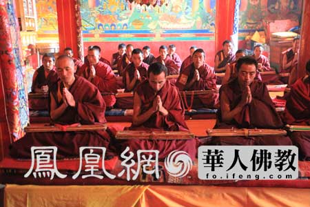 萨迦寺佛学院里,正在上课的高级佛学院学僧。
