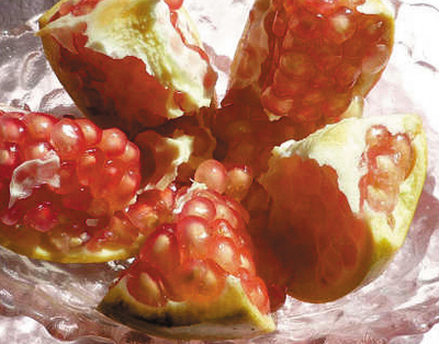 石榴:石榴身上有着浓浓的异域风情,性温、味甘酸涩的它入肺、肾、大肠经,生津止渴,收敛固涩,是适合秋天保养身体的好食材。况且石榴不同于其他水果的地方在于,它需要我们用心地去对待那一颗颗珊瑚红的果实,让这一刻充满了童心。