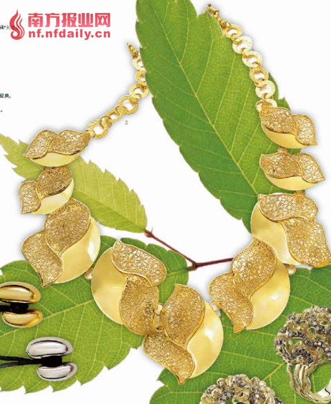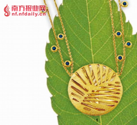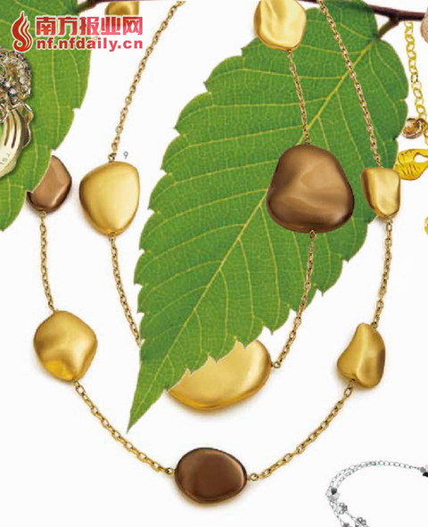 K-gold 项链,用树叶造型及树干纹理作为设计元素。