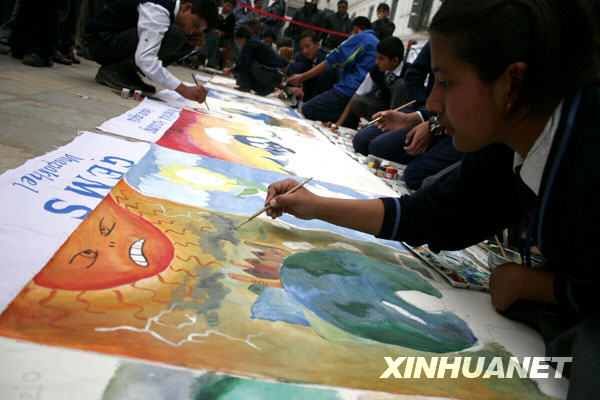 11月11日,尼泊尔学生在首都加德满都参加以应对气候变化和全球变暖为主题的绘画比赛。该活动旨在提高尼泊尔学生对气候变化问题的认识,共有11所学校的48名学生参加了比赛。