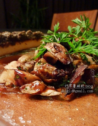 说说主菜里的“土豆团子”:这个是“意译”,其实是pizokel,传统的阿尔卑斯主食,由土豆面粉鸡蛋牛奶制成的面团,一般里面要掺上香肠和腌肉的碎末,素的则不加。但这道传统菜做得很时尚,大厨搞了点儿“分子菜”的新意思,那个似是而非的泡沫,有不可思议的蘑菇浓香。