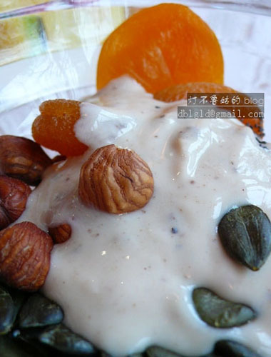 坚果干果拌酸奶是早餐重点。酒店自助早餐的酸奶有无糖的,不妨用果脯调味,有时遇上‘home made’的新鲜果酱,也可加上一点儿;坚果则是瓜子榛子杏仁罂粟籽……每样一勺。这个营养和能量都非常充沛。