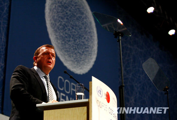 12月7日,在丹麦首都哥本哈根,丹麦首相拉斯穆森致开幕辞。