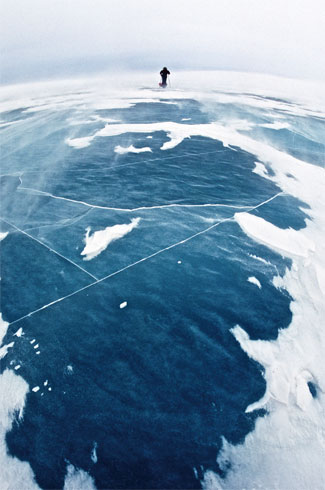 就是在这一次的行程中,小组的成员还遭遇了有史以来最恐怖的一夜。“那天晚上的天特别黑,一点月光也没有,我们决定在一片类似足球场大小的地方安置帐篷。晚上3 点左右,我们突然发觉帐篷中间的冰块开始断裂,原本像足球场那样大的冰块变成了像网球场那么大的冰块,然后再变成乒乓桌大小的冰块。我们马上离开帐篷逃跑,一路狂奔到另一片看上去足够安全的冰层上。”马丁后来回忆说,那一晚后来谁也不敢睡觉,“想想就在几天前我们还在温暖舒适的家里喝茶讨论极地的行程,现在却睡在一块随时会断裂的冰块上,在一片冰冷黑暗中默默呼吸。”