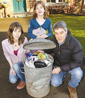 据英国《每日邮报》1日报道,史特劳斯夫妇的三口之家堪称英国“最环保家庭”。过去12个月中,他们全家制造的垃圾总量只有区区一小桶。新年伊始,史特劳斯夫妇立下誓言,今年实现垃圾“零排放”!