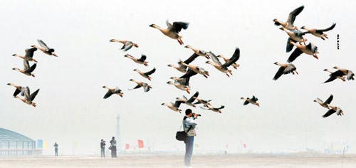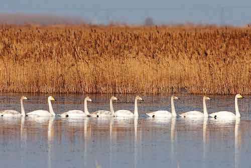 仅仅从2009年入冬以来到现在,就已经有500余只大天鹅来此越冬。保护区的工作人员都可以看到它们在悠闲地踱来踱去,有的引吭高歌,有的展翅飞翔,形成了一道道美丽的风景线。最近几天,这里还出现了全球性易危的小白额雁,这种全世界范围内不足3万只的物种,在中国境内甚为罕见。