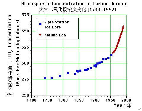 然而,近百年来,也就是工业革命之后,CO2浓度开始猛增,从之前的280ppm上升到2005年的379ppm,达到65万年以来的最高点。短短一百多年间,二氧化碳的浓度值增长了30%以上,由此引发了过度的温室效应。
