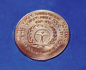 1992年,联合国在巴西里约热内卢召开了举世瞩目的环境与发展大会。中国政府派团参加了会议。与20年前出席斯德哥尔摩会议形成鲜明对比,中国政府所推行的有中国特色的环境与发展战略,以及在会议期间所表现出的积极姿态,受到了国际社会的高度肯定。也是在这次会议上,曲格平被授予国际环境领域中的最高奖项——联合国环境大奖。当时,许多国外媒体将曲格平的这次获奖形容为“92里约殊荣”(图8)。