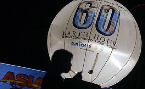 “短短60分钟,其实可以为地球做大贡献,因为每节约1度电,就减少了1千克二氧化碳和0.03千克二氧化硫的排放。”一位世界自然基金会志愿者说。