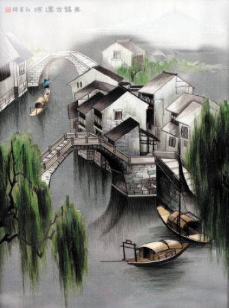 无锡刺绣大师赵红育作品《古运河秀色》