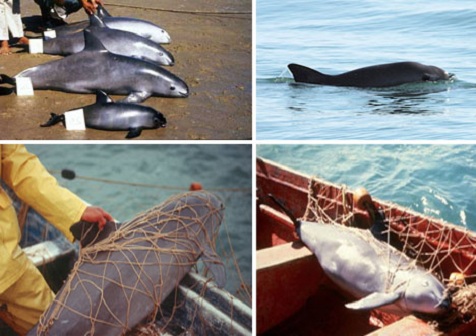 小头鼠海豚是一种看起比较丰满的鼠海豚,根据它们眼睛周围的深色环状斑纹和嘴巴上的斑块,可以区分开它们。由于刺网捕鱼、水流减少和水污染等原因,目前小头鼠海豚仅剩大约150只。