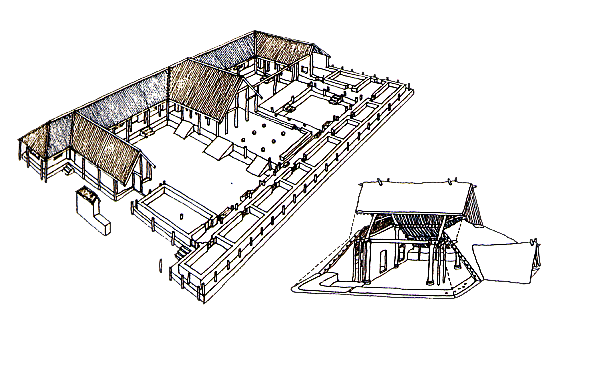 在母系氏族社会晚期的新石器时代,在仰韶、半坡、姜寨、河姆渡等考古发掘中均有居住遗址的发现。北方仰韶文化遗址多半为半地穴式,但后期的建筑已进展到地面建筑,并已有了分隔成几个房间的房屋。其总体布局有序, 颇能反映出母系氏族社会的聚落特色。