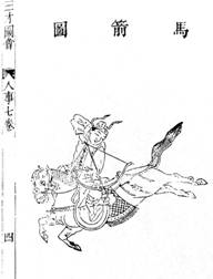 战国时期随着骑兵在战争中的运用,人们还发明了骑射这种射箭方式。所谓骑射即骑在马上射箭。骑在马上射箭,既要掌握身体的平衡,又要有很高超的判断力,因此它对射箭的技术提出了更高的要求。