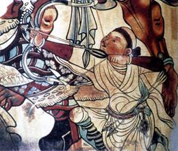 战国时首先提倡骑射的是赵国的赵武灵王。赵国处在中国的北部,经常受到胡人的进犯。胡人进攻时身穿短衣,人人骑马,轻巧灵活,常常使以战车为主要装备的赵国军队疲于奔命,且屡吃败仗。为了改变这一局面,赵武灵王果断的要求军人脱掉宽袖大袍和沉重的铠甲,穿上窄袖的短衣,抛弃笨重的战车,直接骑马作战。
