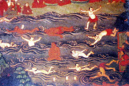 西藏布达拉宫中描绘游泳场景的清代壁画