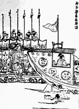 《水浒传》中描绘梁山好汉凿沉高俅所坐战船的插图