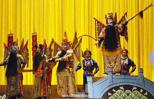 中国京剧是中国的“国粹”,已有200年历史。京剧,也称“皮黄”,由“西皮”和“二簧”两种基本腔调组成它的音乐素材,也兼唱一些地方小曲调(如柳子腔、吹腔等)和昆曲曲牌。它形成于北京,时间是在1840年前后,盛行于20世纪三、四十年代,时有“国剧”之称。现在它仍是具有全国影响的大剧种。它的行当全面、表演成熟、气势宏美,是近代中国戏曲的代表。