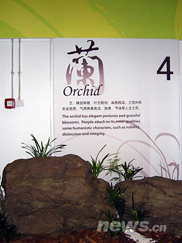 “梅兰竹菊”,中国人美其名曰“花中四君子”,中华民族对它们诗一般的感受,是以深厚的民族文化精神为背景的。梅兰竹菊,占尽春夏秋冬,中国文人以其为"四君子",正表现了文人对时间秩序和生命意义的感悟。梅高洁傲岸,兰幽雅空灵,竹虚心有节,菊冷艳清贞。中国人在一花一草、一石一木中暗含了自己的一片真情,从而使花木草石拓展了原有的意义,成为人格形象的象征。