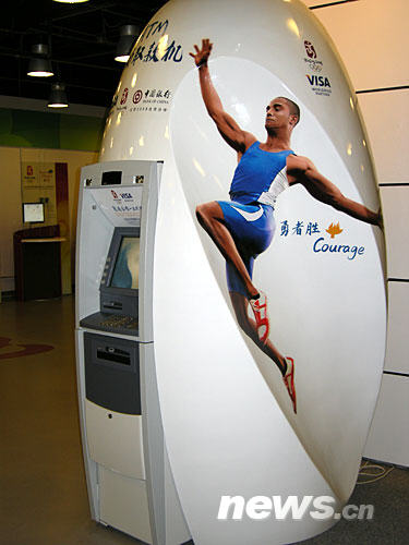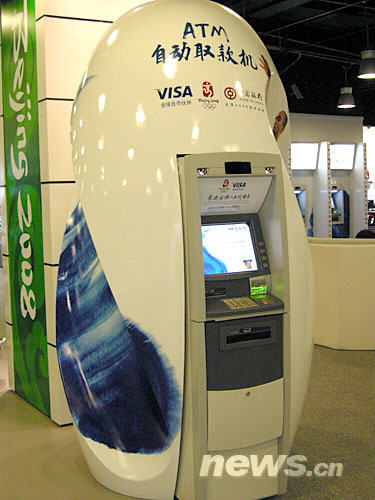 奥运会主新闻中心内部墙面以传统人物的画像装饰,另外电梯的扶梯上面都挂载着类似的装饰物。甚至连ATM取款机也做成青花瓷形状。所有的这一切都让人在不知不觉中迈进了彰显中华文明的世界里。