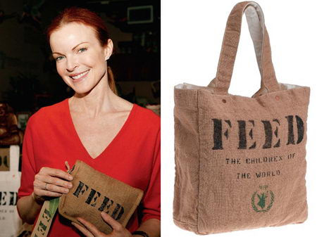 小布什的外甥女Lauren Bush在去年与联合国世界食品计划合作,设计了环保包“Feed 1Bag”,以唤起人们对饥饿儿童的重视,并将出售所得全部捐给WFP以用于在校学生哺养计划(School Feeding Scheme)。环保包的一面以麻布粮食袋制成,另一面则是白色斜纹棉布。每个包上都标有数字“