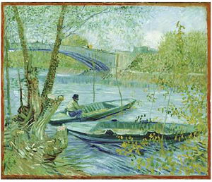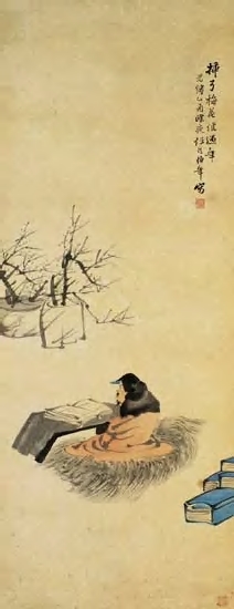 (四)中国画不重背景,西洋画很重背景。中国画不重背景,例如写梅花,一支悬挂空中,四周都是白纸。写人物,一个人悬挂空中,好像驾云一般。故中国画的画纸,留出空白余地甚多。很长的一条纸,下方描一株菜或一块石头,就成为一张立幅。西洋画就不然,凡物必有背景,例如果物,其背景为桌子。人物,其背景为室内或野外。故画面全部填涂,不留空白。中国画与西洋画这点差别,也是由于写实与传神的不同而生。西洋画重写实,故必描背景。中国画重传神,故必删除琐碎而特写其主题,以求印象的强明。