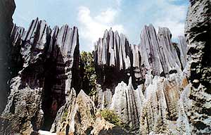 ——具有最为多样的石林喀斯特形态。世界各地最为典型的石林喀斯特形态在这里都可以找到,不仅有发育完美的剑状、刃脊状喀斯特,而且还有蘑菇状、塔状等形态,可谓集石林景观之大成,堪称“石林喀斯特博物馆”,具有极高的科学和美学价值。