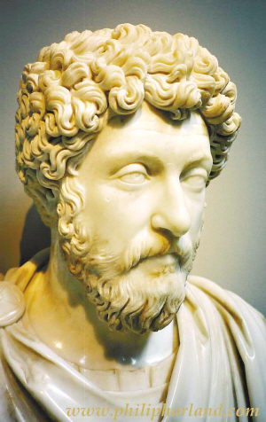 马可•奥勒留:(Marcus Aurelius,公元121—180年)著名的“帝王哲学家”,古罗马帝国皇帝,在希腊文学和拉丁文学、修辞、哲学、法律、绘画方面受过很好的教育,晚期斯多葛学派代表人物之一。奥勒留也许是西方历史上唯一的一位哲学家皇帝。他是一个比他的帝国更加完美的人,他的勤奋工作最终并没有能够挽救古罗马,但是他的《沉思录》却成为西方历史上最为感人的伟大名著。
