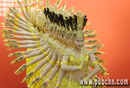 中国残疾人艺术团演员正在演出“千手观音”。