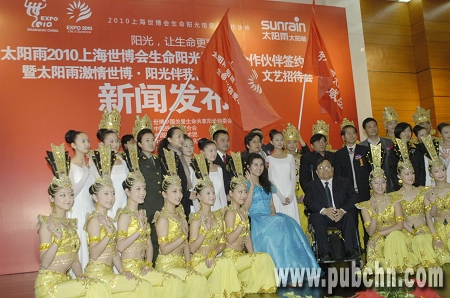 2010年4月28日下午,太阳雨2010上海世博会生命阳光馆爱心合作伙伴签约仪式暨太阳雨激情世博•生命阳光行——《我的梦》文艺招待会新闻发布会,在北京中国残疾人联合会成功举办;太阳雨太阳能正式签约2010上海世博会生命阳光馆,成为爱心合作伙伴。据不完全统计,本届世博会,参与太阳能光热企业众多,而中国太阳能光热行业领军品牌太阳雨的加入,则意味着,中国太阳能光热产业作为本次世博的隐形冠军,必将闪耀于2010上海世博会。