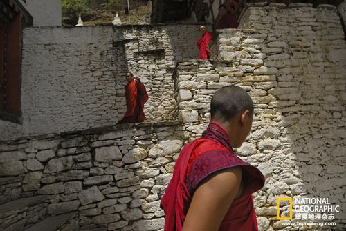 这个小小的王国,当地人称之为“主域”,意为“雷龙之地”,面积跟瑞士差不多,夹在印度和中国两个大国之间的层峦叠嶂中,在与世隔绝的状态下存活已逾千年。天然的地理和人为的政策将它与外部世界隔断,在上世纪60年代前,这个国家没有道路、没有电力、没有机动车、没有电话,也没有邮政服务。即使今天,这里引人入胜的风景,也在告诉你这是一个被时光遗忘的地方:雾气缭绕的悬崖上是高高伫立的古庙;从未被征服过的神山圣峰脚下是原始的河流和森林;木宫殿里住着仁爱的国王和他的一位王后(王后共有四位,且是一家姊妹)。难怪来访者都忍不住称不丹为“最后的香格里拉”。然而,就算是香格里拉也不能一成不变。