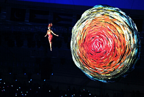 与李宁在奥运会开幕式上的“飞天”相比,在残奥会主火炬点火的一刻,是另一种“飞天”。这名残疾人火炬手靠自己的双手一点点靠近目标,更能体现一种坚忍不拔的意志。以往在残奥会开幕式结束后,现场观众会立刻离开,但北京残奥会开幕式结束后观众都迟迟不愿离开,这是因为有这么多残疾人参加表演,让观众非常感动。特别是残疾人演员克服肢体和感官的残障,表现出了高超的艺术水准,令人赞叹。