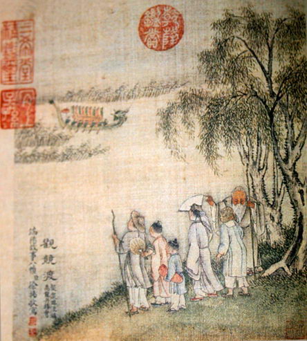图:清代徐扬的《端阳故事图册》中的观竞渡图