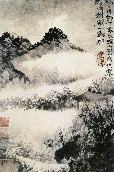 石涛对绘画的思考是从不满画坛现状开始的。清康熙二十二年(1683)他在题赠常涵千的画中说道:“唐画,神品也;宋、元之画,逸品也。神品者多,逸品者少。后世学者千般,各投所识。古人从神品悟得逸品,今人从逸品中转出时品,意求过人而无过人处。”这段题跋很有见识,特别是“悟”和“转”两字用得非常贴切。他所批评的“时品”是指泛滥于明末清初、一味追求元人逸笔而徒有形式的作品,其中是否也包括风靡画坛的“四王”作品尚待研究。但他的针对性确实与董其昌等人提倡的“南宗”绘画有密切关系,而“四王”往往被人们奉为“南宗”衣钵继承人,且炙手可热。
