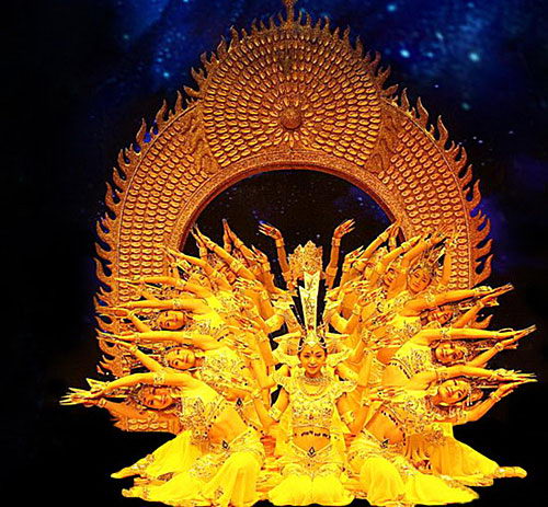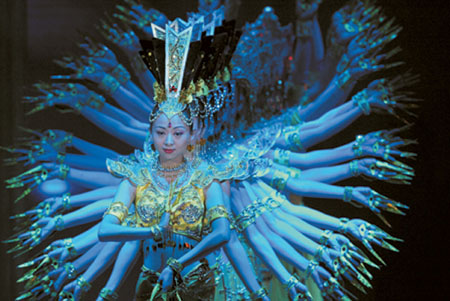 当演员身着金光灿灿的观音服出现在演出现场时,美国著名节目主持人路易斯说:“今天我们请来了中国残疾人艺术团。他们是来自中国的最优秀的演员,虽然是聋人,但他们表演的节目,将是今天最精彩的。”