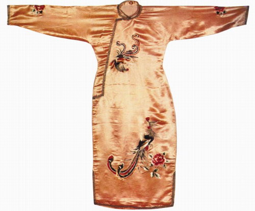 20世纪20年代末期的彩袖曲襟低领长袖旗袍