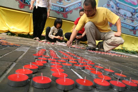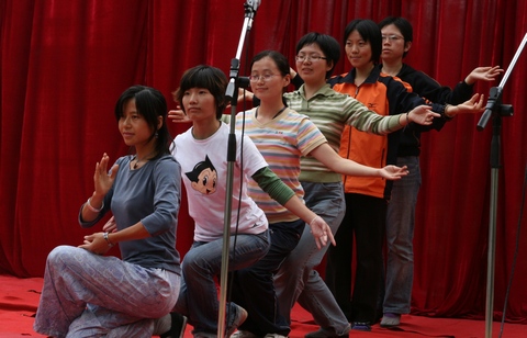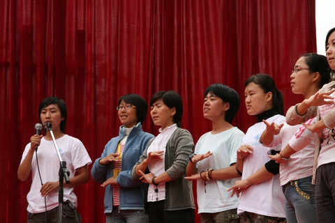 宛如天籁般的歌声划破长空,接着,敬善媛将以一首苏轼的《水调歌头》拉开经典诗词诵读的序幕。负责博客书出版的文化组义工将随即以中、英、日、法四国语言读诵《心经》;流通处义工供养应景的舞蹈《月光下的凤尾竹》,凤凰岭的树林在风中摇曳,龙泉水静静地流淌,在银色的月光下波光粼粼。北京市仁爱慈善基金会用手语表演《仁爱之歌 》,让这一夜中秋节不仅属于僧俗二众,而且属于四川地震灾区的全体民众,属于参与北京奥运会的所有义工。
