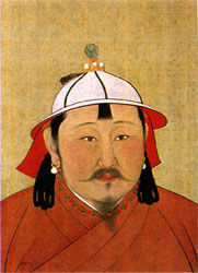 甘肃安西榆林窟元壁画,穿翻折领小袖袍的行香蒙古贵族