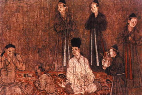 穿左衽窄袖袍的契丹族妇女及穿圆领袍的男子(胡瓌《卓歇图》局部)
