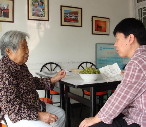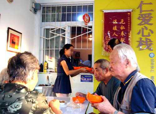 送老人回家的路上,遇到了照看老人的亲戚,还有老人的庆家,一位满头银发的老爷爷。李德馨老人兴奋地对他俩说:“瞧,我一个人走过来的,挺行吧!”看着老人孩童般高兴的样子,大家都忍不住笑了。李德馨老人的亲家叫郑文卓,今年八十八岁了,退休前是农业大学的教授,老伴已经去逝,儿女都不在身边,心栈也是每天早上给他送粥。郑老先生慢条斯理地说:“每天喝粥的时候啊,我都舍不得一下子喝完,总是先尝两口,然后吃烧饼,把粥留到最后,每次都喝干净,一点都不剩。现在已经进入老龄化社会了,老人的关怀是一个社会问题,你们做的是一件很有意义的事情,是在建立一条关爱的……”不等老人说完,身旁的那位亲戚便笑着接过去说:“绿色通道!”看来,这句对心栈的赞美是郑老先生的口头禅啊!