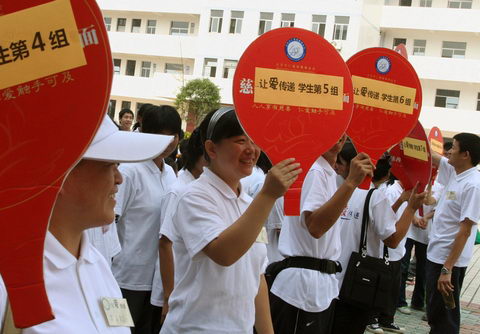 10月2日下午,北京市仁爱慈善基金会安徽太湖“让爱传递”助学联谊活动在太湖二中正式启动,140多名受助学生,70余名带队校长和老师、县委、县教育局等领导,30名仁爱志愿者举行了一次别开生面的开幕仪式。傍晚时分,各个学生小组的孩子们进行热情的自我展示,晚上仁爱志愿者和老师们为孩子们举办了百人生日宴会。