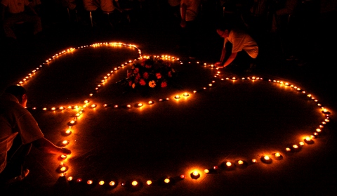 灯光熄灭后,我们点燃手中的一盏小烛灯,就像点亮我们心中的明灯,让我们永远告别黑暗,走向光明。志愿者们将蜡烛摆放成“心连心”的形状,大家一起唱起了生日歌。我看到了洋溢在每个孩子脸上幸福的笑容。歌声后孩子们闭着眼睛,开始许愿:“愿我的家人和老师们身体健康、心情愉快,愿离去的亲人看到我快乐的成长也能够在天上展开微笑。愿所有人身心和乐、家庭和睦、社会和谐、世界和平!”我看到他们嘴角在浅浅的笑,然后轻轻地睁开双眼。