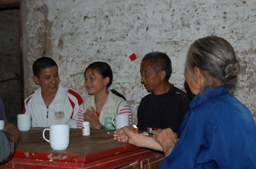 玲秀的个子不高,一开始不爱说话,我们请她带我们参观她小小的家,前面很小的院落和后院的猪圈。奶奶在地上晒着黄豆,现在豆荚里的豆子都落在地上,她一边捡一边向我们介绍说,这种豆子腌过之后可以吃很久。