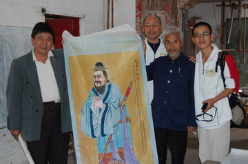 爷爷的画很拙朴,如同老人自己。在翻到孔夫子像时,我提议说,让我们这些做教育的后人跟教育事业的开山鼻祖合影留念。照完相,老人热情地说,你要是喜欢,就把这幅画带走吧。老人的慷慨让我们很感激,但志愿者个人是不能接受赠礼的。我斟酌了一下这幅画的价值,如果可以把这幅画放到仁爱助学组的办公室,倒别有一番意义呢!于是我们感谢老人的馈赠,建议老人改把这幅孔圣人的画像赠给基金会,如此善缘也就更为圆满些。